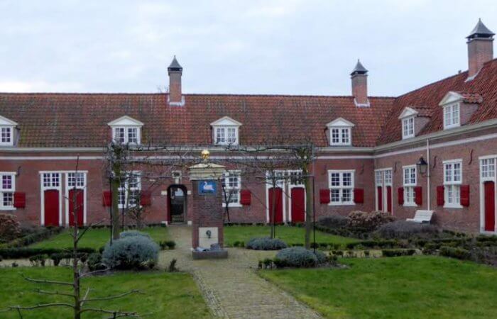 Snel loop ik door de hof, langs de waterput die op 10 meter diepte drinkwater uit het duin oppompt. Ik krijg een rondleiding door de stijlkamer van het hoge regentenhuis waar Cornelia van Wouw tot op respectabele leeftijd haar administratie deed. Waar getrouwde vrouwen in die tijd golden als handelsonbekwaam, bleef zij ongehuwd en zette de lakenhandel van haar vader voort. Even in de veertig was ze toen ze dacht te gaan sterven. Ze kocht een stuk grond waar zij deze Hof van Wouw met huisjes voor mindervermogende vrouwen liet bouwen, om iets goeds na te laten. Maar ze ging niet dood, ging er zelf ook wonen en werd 81.
